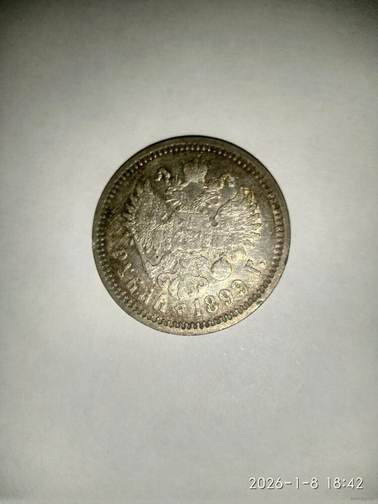 РеверсВ центре изображен Малый Государственный Герб Российской империи — двуглавый орёл, головы которого увенчаны двумя коронами, третья, большая корона над ними. Все они соединены орденской лентой ордена Св. Апостола Андрея Первозванного. На груди орла расположен Московский герб, в щите изображен Георгий Победоносец с копьем поражающий дракона. Вокруг щита цепь ордена Св. Апостола Андрея Первозванного. На крыльях изображены гербы: Царства Казанского, Польского, Херсонеса Таврического, Астраханского, Сибирского, Грузинского и герб соединенных княжеств Киевского, Новгородского и Владимирского — по 4 на каждое крыло. В правой лапе орла — скипетр, в левой — держава. Под ним слева направо изображены: номинал — надпись «РУБЛЬ», цветочная розетка и дата выпуска «1899 Г.». По окружности канта имеются рельефные элементы, выполненные в виде зубцов.Каталожные номера