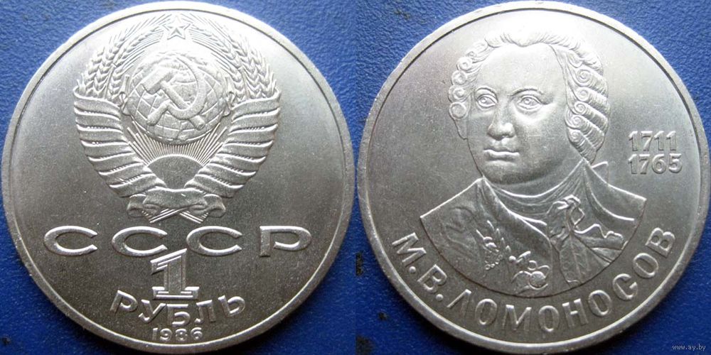 1 рубль 1986 года. Ломоносов. UNC