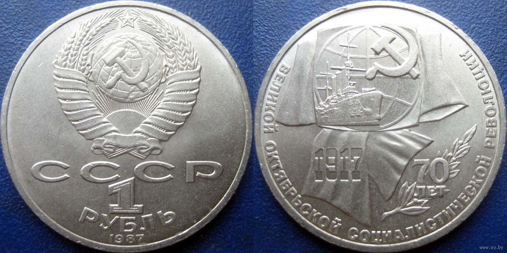 1 рубль 1987 года. 70 лет ВОСР. аUNC