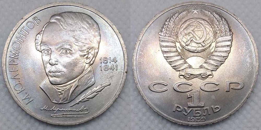 1 рубль 1989 г UNC СССР 177 лет со дня рождения Лермонтова
