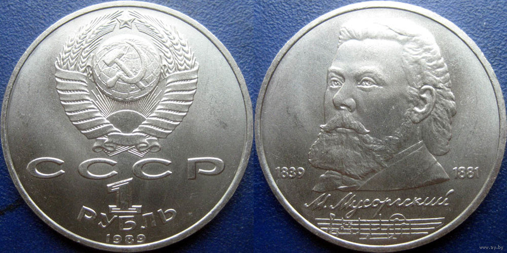 1 рубль 1989 года. Мусоргский. UNC