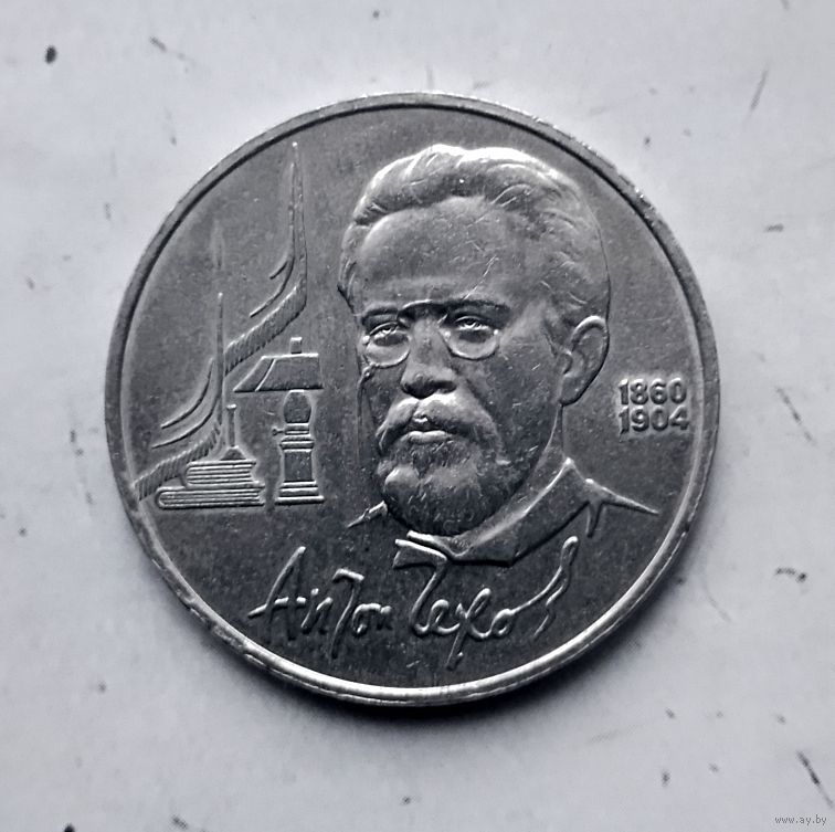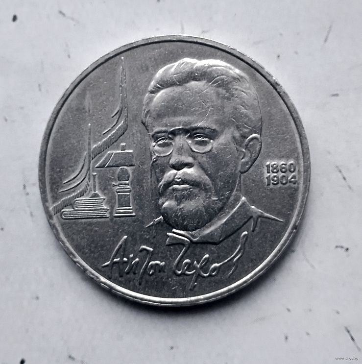 1 рубль 1990 года СССР. 130 лет со дня рождения А. П. Чехова..