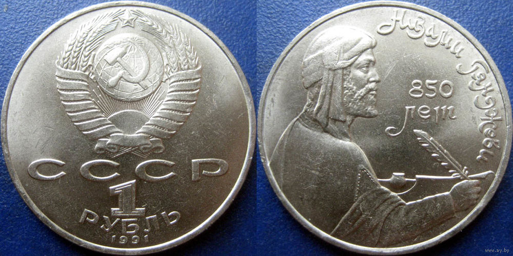 1 рубль 1991 года Низами Гянджеви. UNC