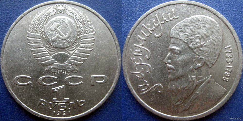 1 рубль 1991года Махтумкули. аUNC