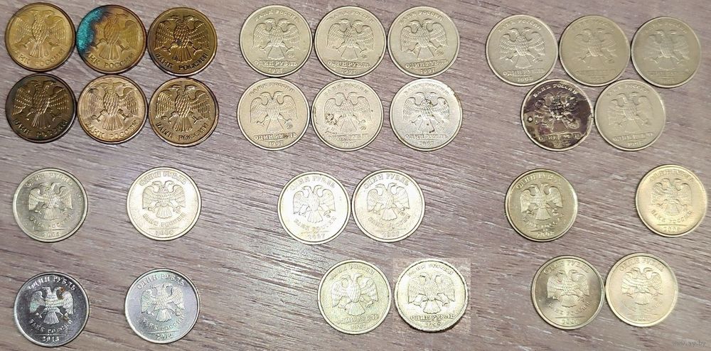 Лот монет номиналом 1 рубль 1992-2014 М и ММД, СПМД общим количеством - 29шт: