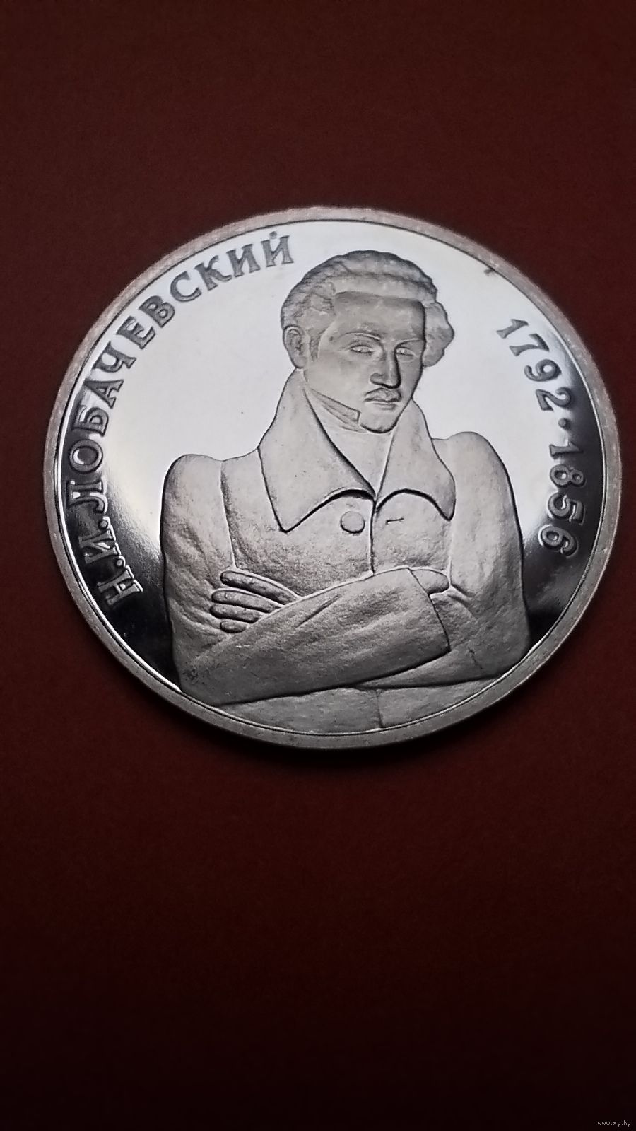 1 рубль 1992. Лобачевский. Молодая Россия. Пруф. С рубля. (01) Кардинально изменил представление о пространстве.