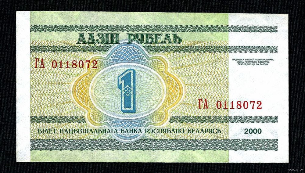 1 рубль 2000 года. Серия ГА 0118072, AU.