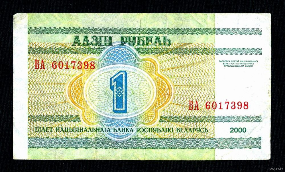1 рубль 2000 года. Серия ВА 6017398, VF.