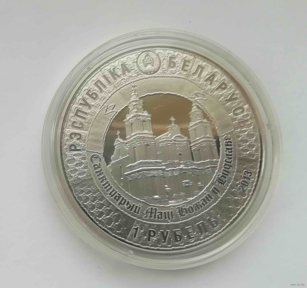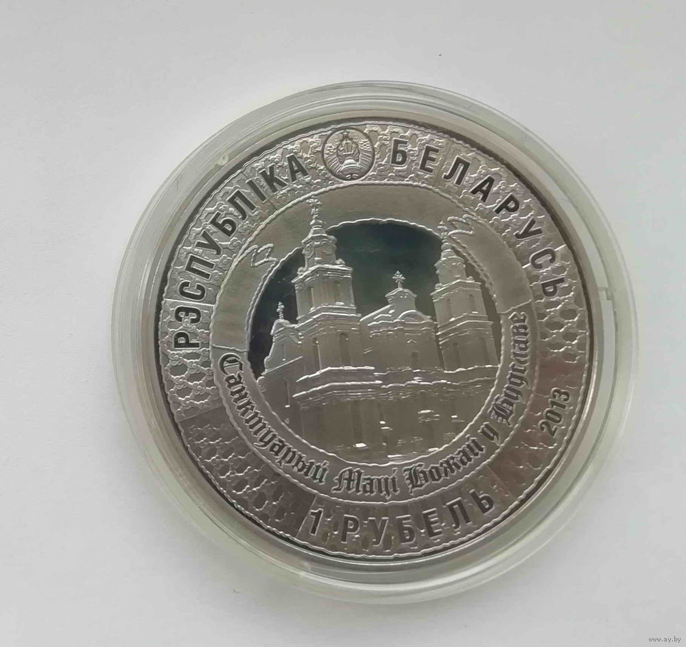 Аверс: вверху - рельефное изображение Государственного герба Республики Беларусь; в центре монеты - изображение Будславского костела, обрамленное лентой с надписью: САНКТУАРЫЙ МАЦІ БОЖАЙ У БУДСЛАВЕ; по кругу на фоне орнаментальной полосы надписи: вверху - РЭСПУБЛІКА БЕЛАРУСЬ, внизу справа - год чеканки, в центре - номинал 1 РУБЕЛЬ.