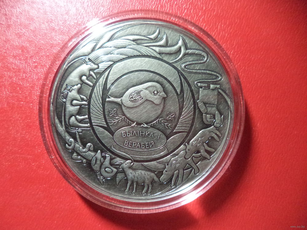 Есть возможность продажи за доп. плату в комплекте с серебряной номиналом в 20 рублей 1 рубль Травинка и воробей серии Белорусские народные сказки.