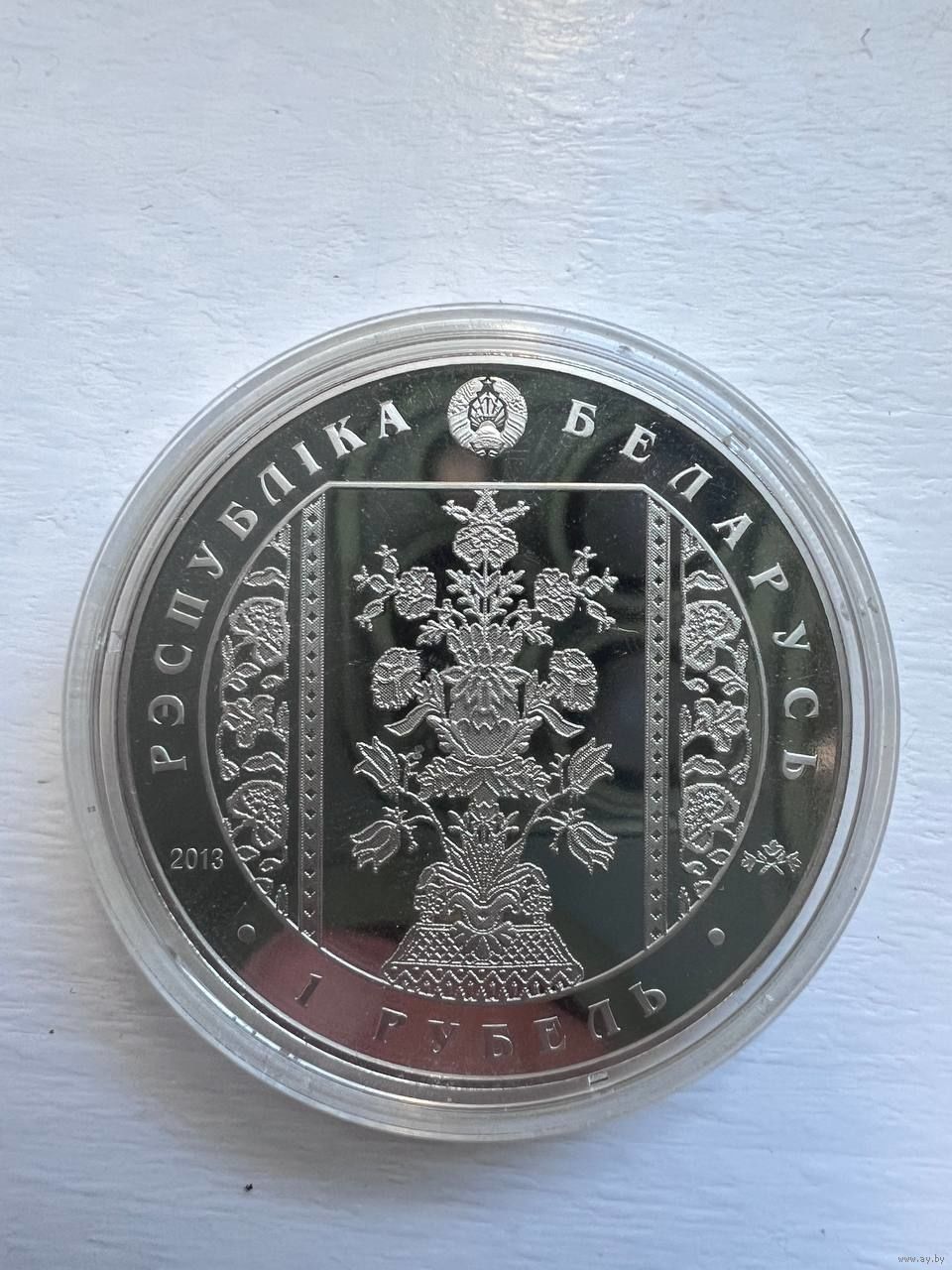 Монета 1 рубль РБ 2013 года. Слуцкие пояса. Радзивиллы. Капсула. Распродажа коллекции.