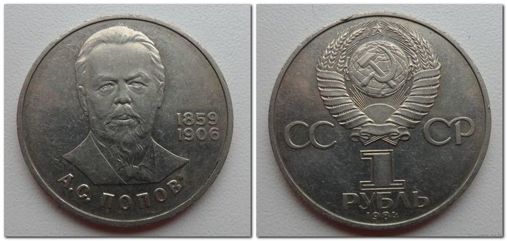 1 рубль СССР 1984 года - 125 лет со дня рождения Александра Степановича Попова