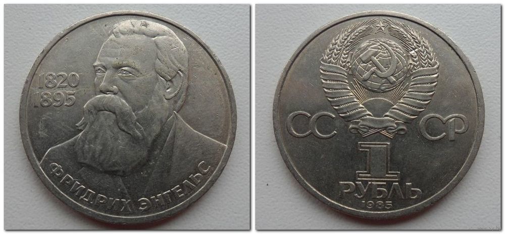 1 рубль СССР 1985 года - 165 лет со дня рождения Фридриха Энгельса