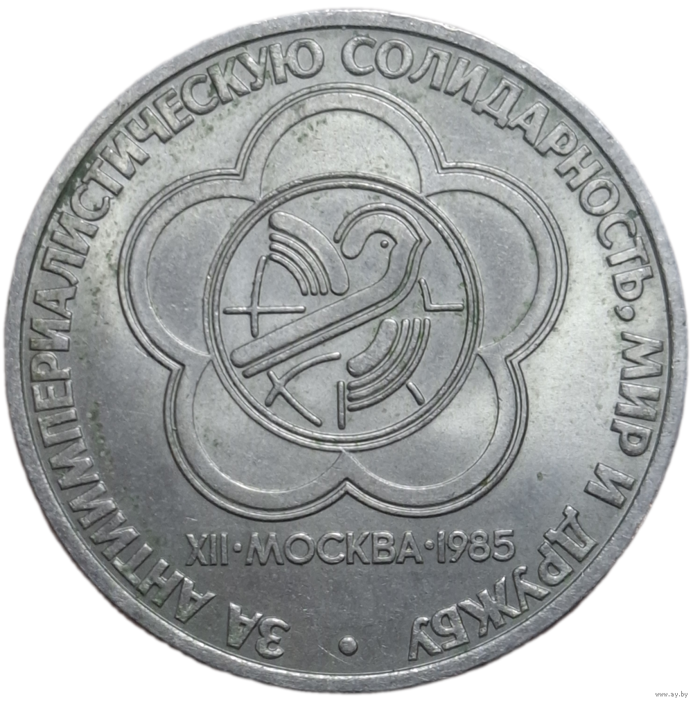 1 рубль "XII фестиваль, Москва 1985 ("За антиимпериалистическую солидарность, мир и дружбу")"