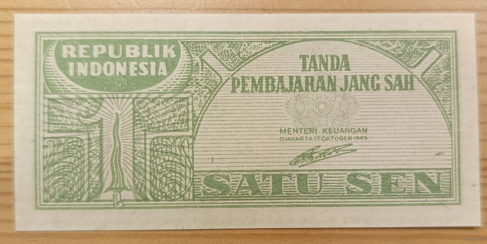 1 сен 1945 года - Индонезия - UNC - первая банкнота Республики Индонезия