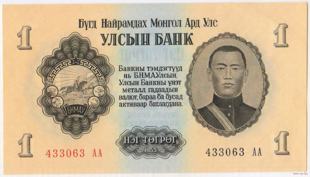 1 тугрик 1955 год. UNC 433063 АА