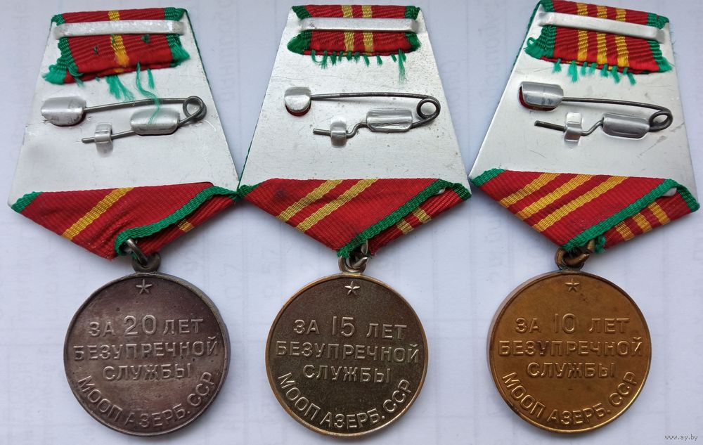 Оригинальный редкий комплект выслуги в МООП Азербайджанской ССР. Промзвено на медали 20 лет запаяно, эмали без нареканий. Страхование лота при пересылке почтой за счёт покупателя.