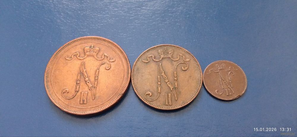 10,5 и 1 пенни 1916 год Российская Финляндия (Состояние на фото,в лоте 3 монеты)