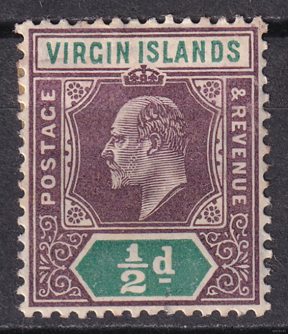 10.BrKCI. Великобритания. Колонии. Виргинские острова. Стандарт. Эдуард. 1904 г. 1/2P. Mi.#26.