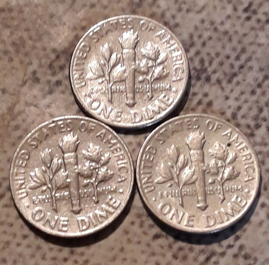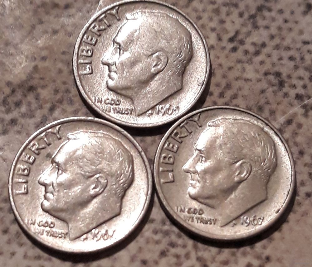 10 центов ( дайм) 1965.1966.1967 США без обозначения МД 3 монеты