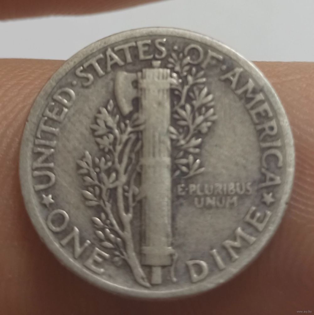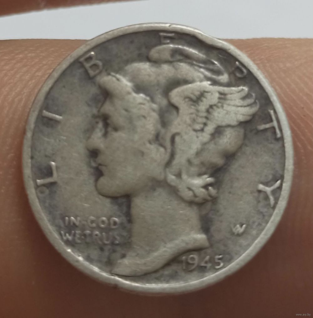 10 центов или 1 дайм 1945г США,серебро 0.900