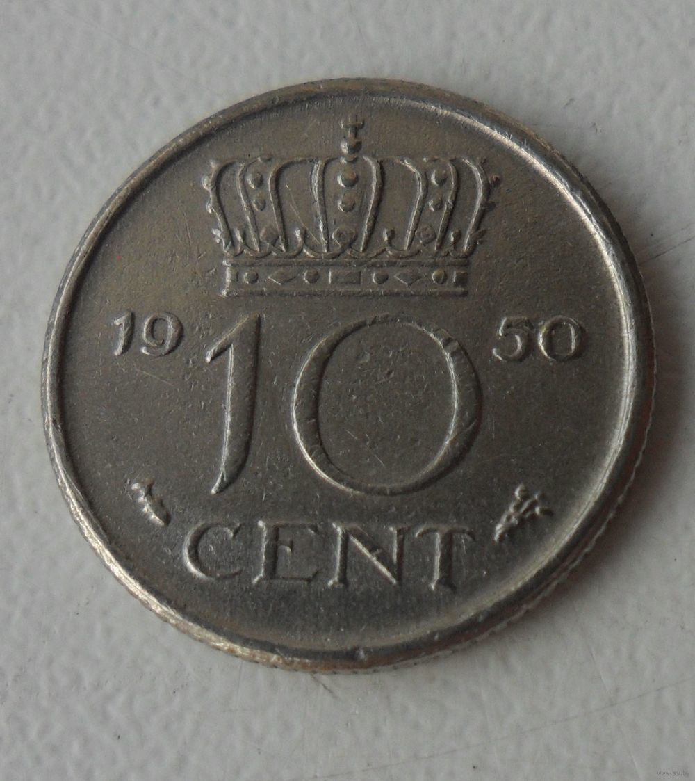 10 центов Нидерланды 1950 г.в.