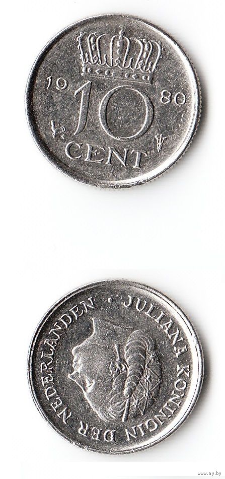 10 центов Нидерланды 1980 года