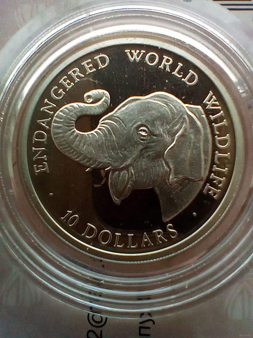 10 долларов 1990 год. Вымирающие виды - Слоны. Острова Кука. Серебро 925 Пруф