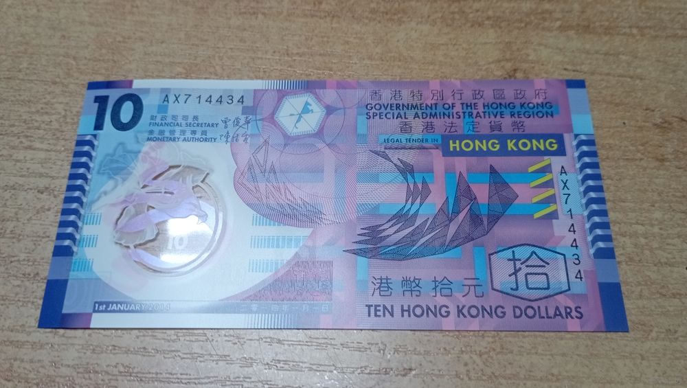 10 долларов 2014 года Гонконга, красивый номер АХ 714434 полимер