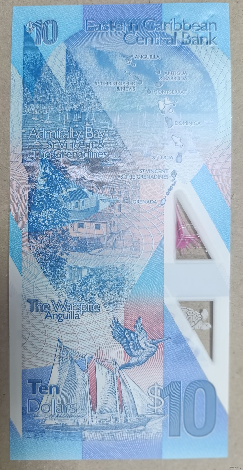 10 долларов 2019 года - полимер - Восточные Карибы - UNC