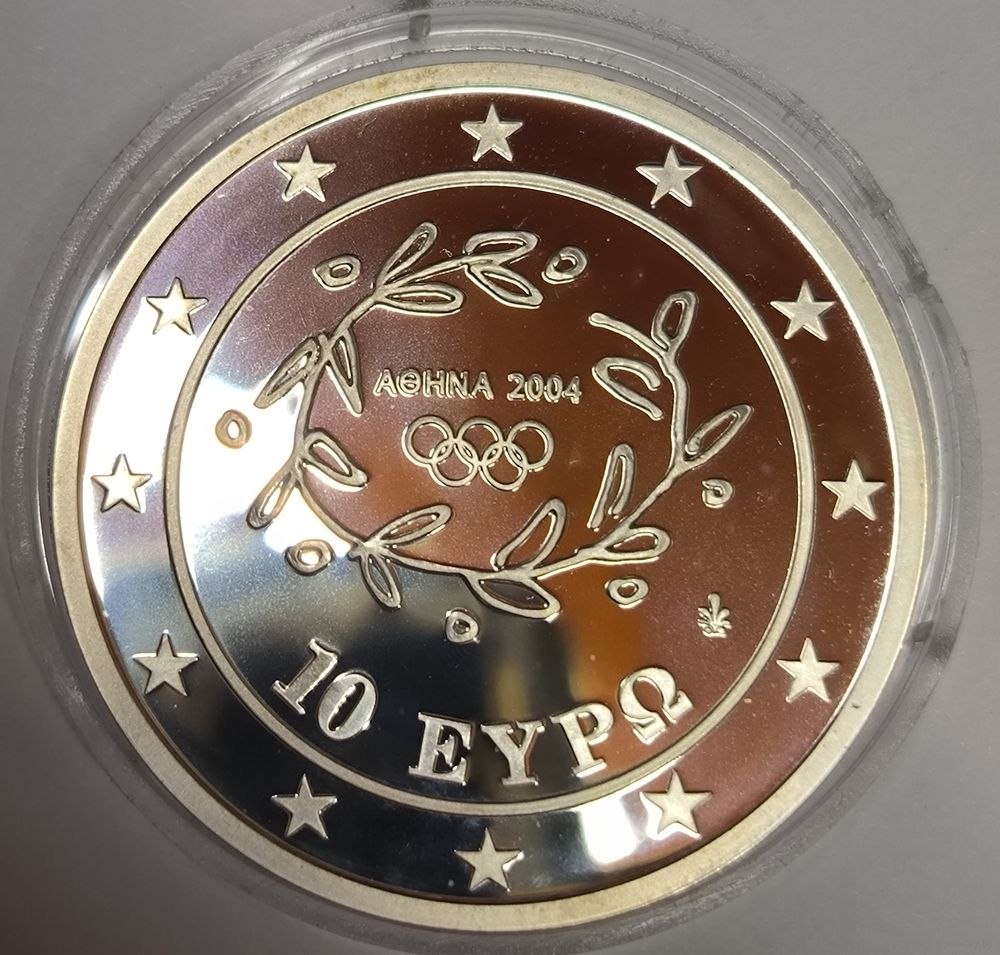 10 евро 2004 Греция плавание серебро 34г 925 пр нетронута! Футляр и серт-т