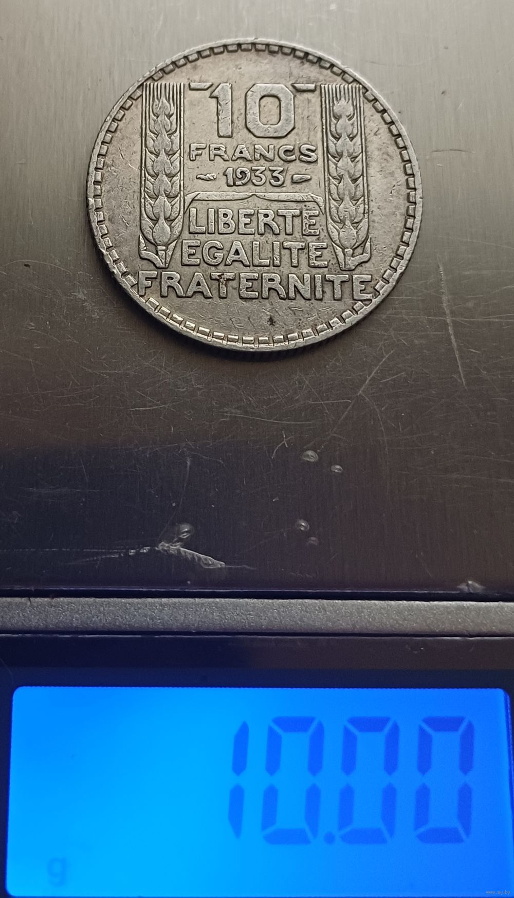 10 франков. 1933г. 680 пр., серебра. Франция.