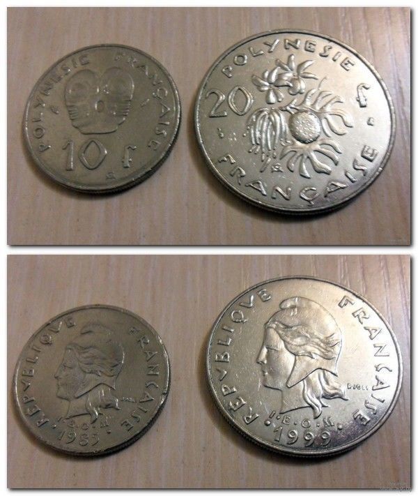 10 франков 1985 года и 20 франков 1999 года Французкая Полинезия (цена за 2 монеты)
