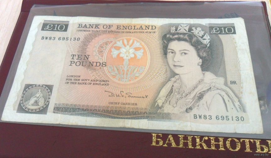 10 фунтов стерлингов Англии 1984 г.в. Подпись: D. H. F. Somerset. Litho printing with L at lower back. (1984-86).