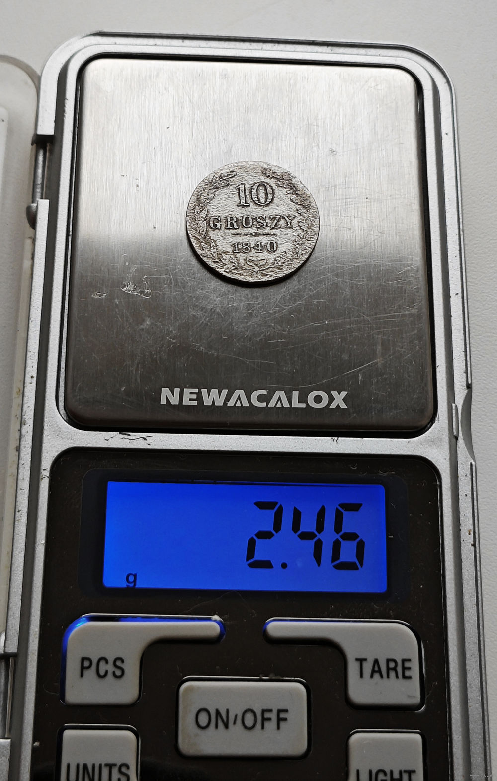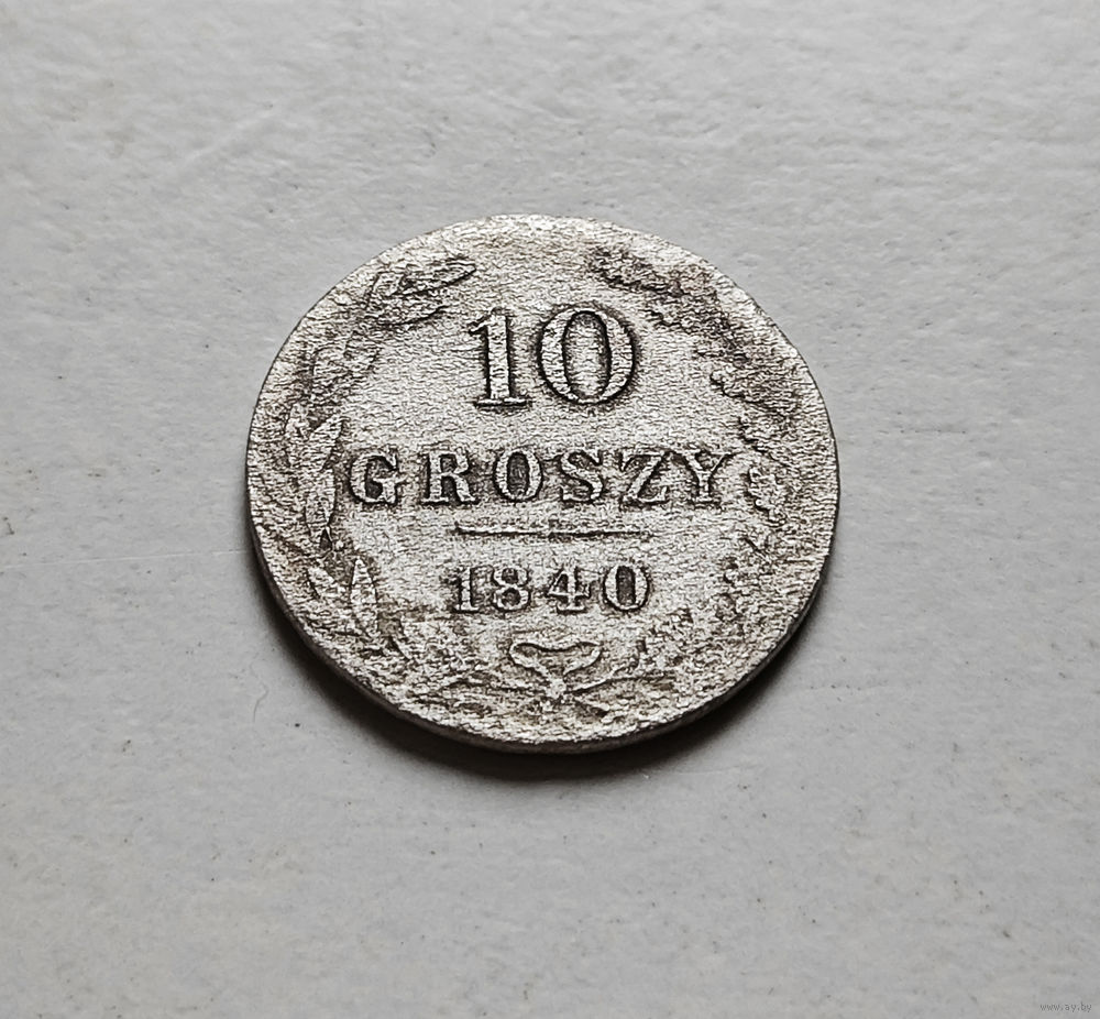 Перед нами монета 10 грошей, выпущенная в 1840 году Варшавский монетным двором (MW), в 1840 году введена в обращение.