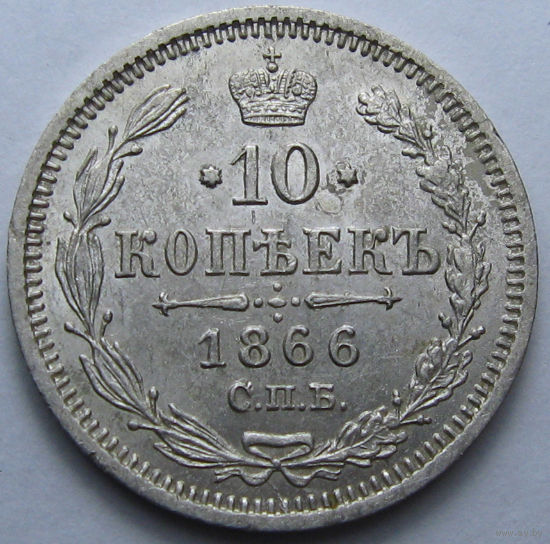 10 КОПЕЕК 1866 СПБ-НФ ШТЕМПЕЛЬНЫЙ БЛЕСК, КЛАДОВЫЙ СОХРАН