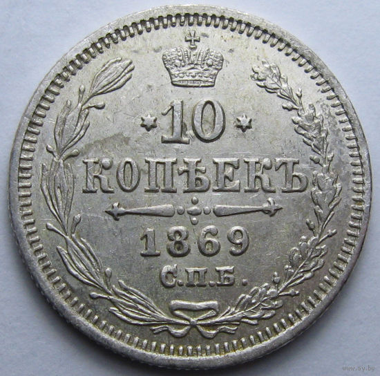 10 КОПЕЕК 1869 СПБ-НI ШТЕПМЕЛЬНЫЙ БЛЕСК, КЛАДОВЫЙ СОХРАН