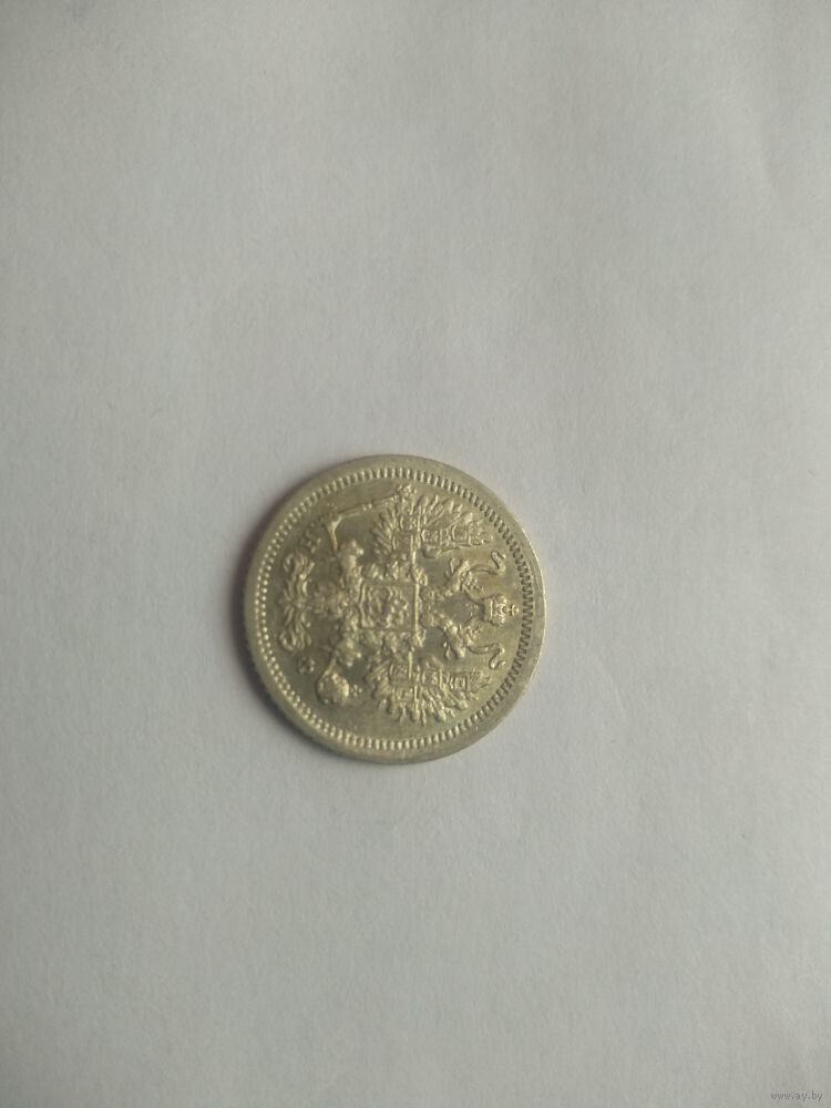 Реверс: Центр аверса занят малым гербом Российской империи — двуглавым орлом. Обе головы орла несут короны, а третья корона большего размера находится над и между головами. Все они соединены орденской лентой ордена Св. Апостола Андрея Первозванного. На груди орла расположен Московский герб — щит с изображением Георгия Победоносца с копьём поражающим дракона (голова слева). Вокруг щита — цепь ордена Святого апостола Андрея Первозванного. Гербы на крыльях (по четыре на каждом крыле): Казанский Польский Таврический Астраханский Сибирский Грузинский Киевский и Новгородский Владимирский В правой лапе находится скипетр, а под ней литера «Н». В левой лапе — держава, а под ней литера «Ф». Вместе буквы образуют инициалы, указывающие на минцмейстера Николая Фоллендорфа. Буртик украшают зубчики, направленные к центру.
