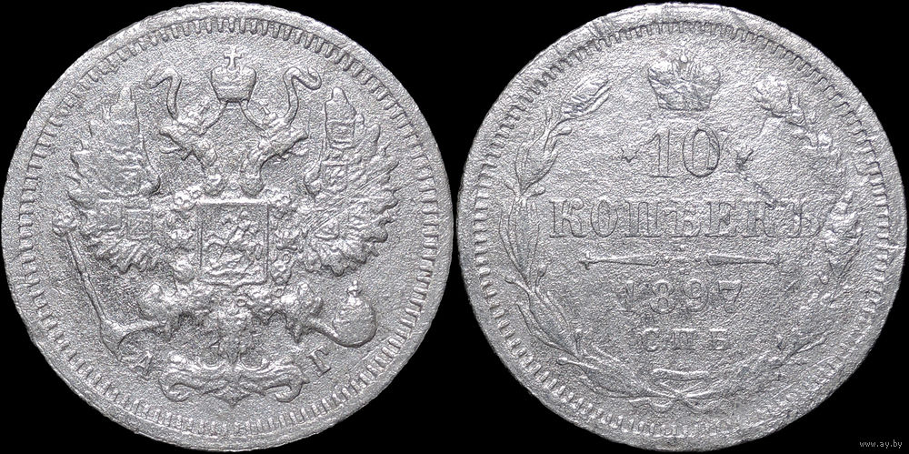 10 копеек 1897, Редкая! С 1 Рубля! Смотрите другие лоты!