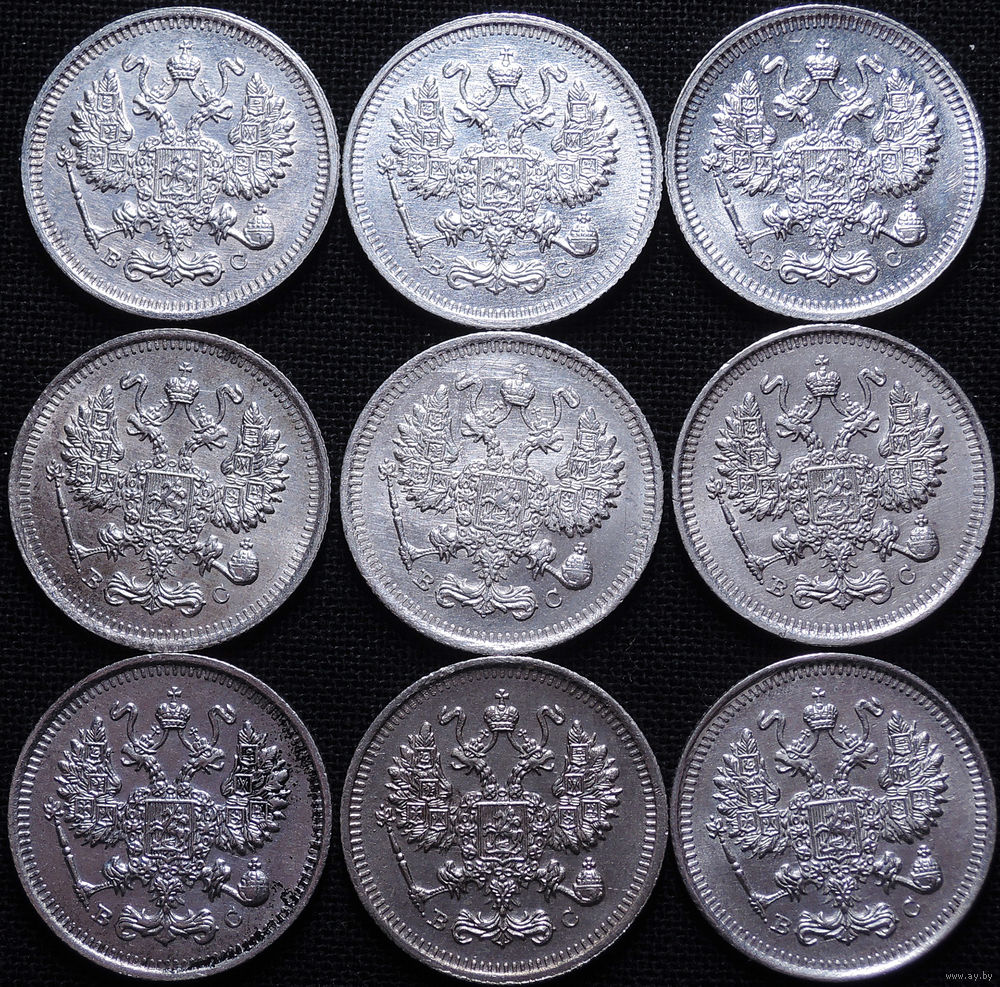 10 копеек 1915, 9 штук, aUNC-UNC, Отличные! С 1 Рубля! Смотрите другие лоты!