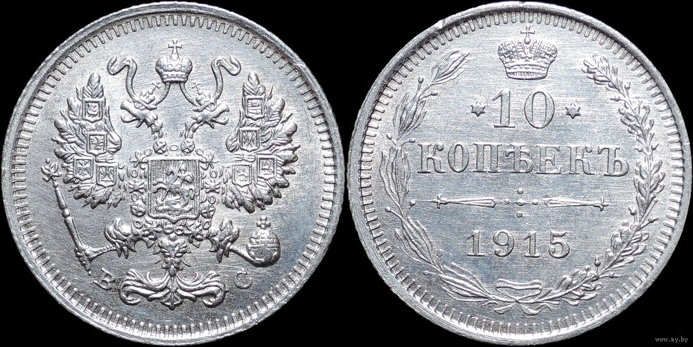 10 копеек 1915, UNC, Отличная! С 1 Рубля! Смотрите другие лоты!