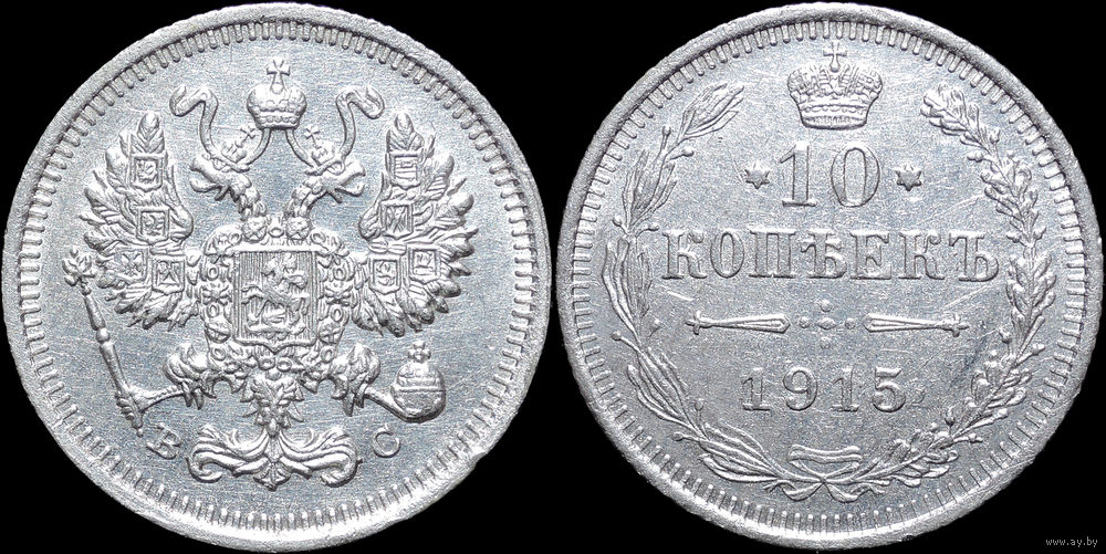 10 копеек 1915, UNC, Отличная! С 1 Рубля! Смотрите другие лоты!