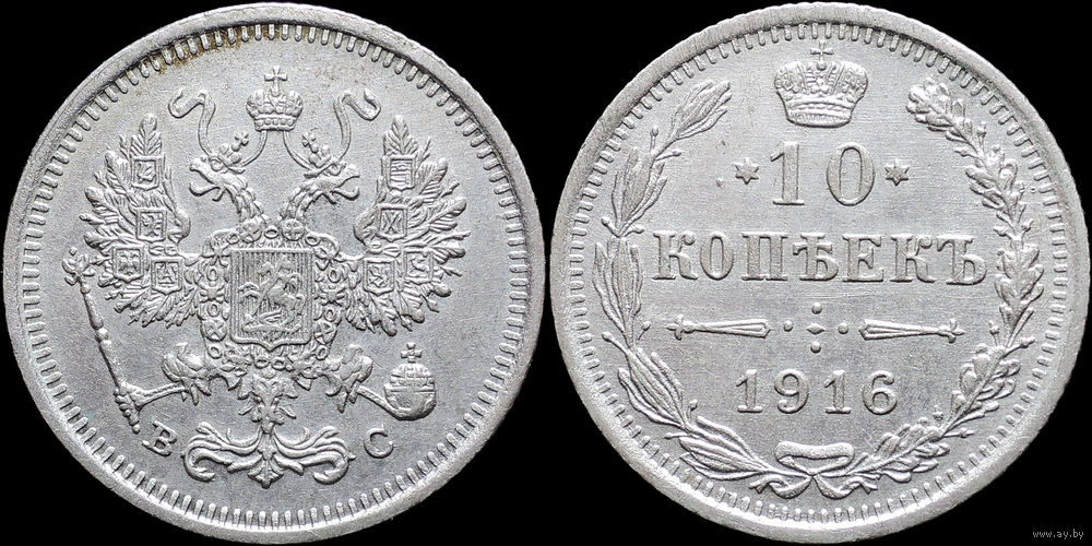10 копеек 1916, aUNC, Отличная! С 1 Рубля! Смотрите другие лоты!