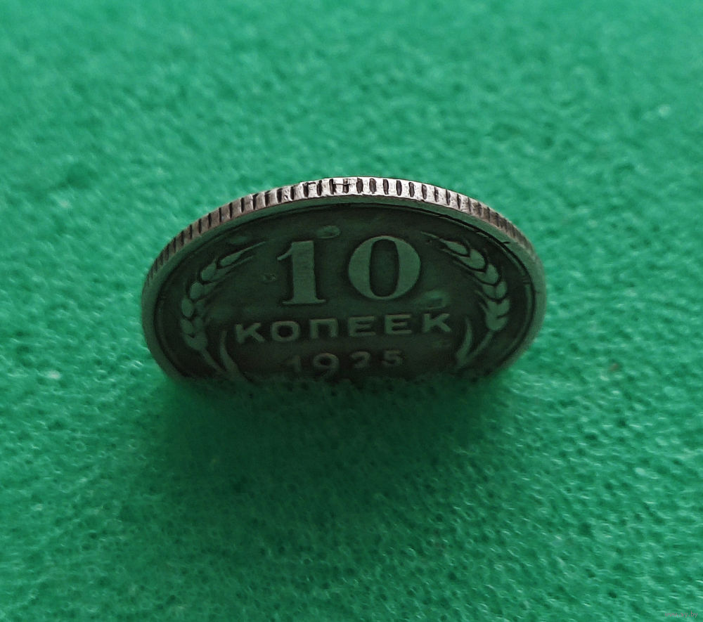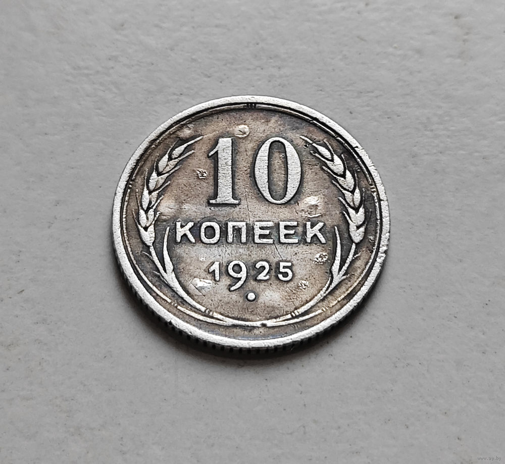 Перед нами монета 10 копеек, выпущенная в 1925 году, в 1925 году введена в обращение.