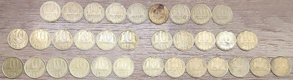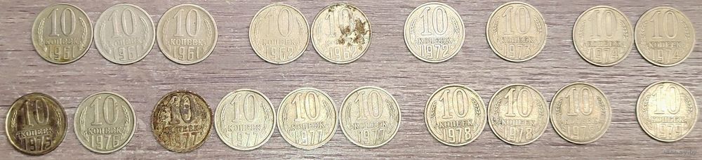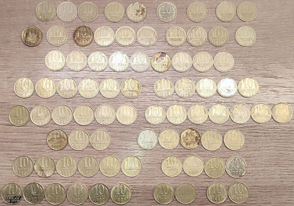 Лот монет номиналом 10 копеек 1961-1991 СССР общим количеством - 80шт: