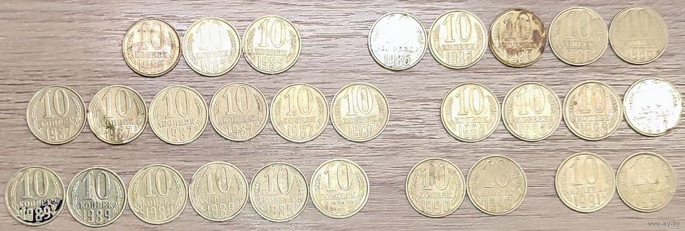 - Монета номиналом 10 копеек 1985 СССР в количестве - 3шт (все немагнитные)