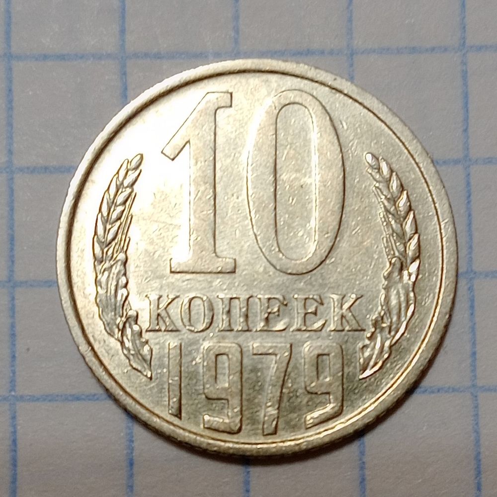 10 копеек 1979 Брак, следы соударения (цифра 10 на гербе)