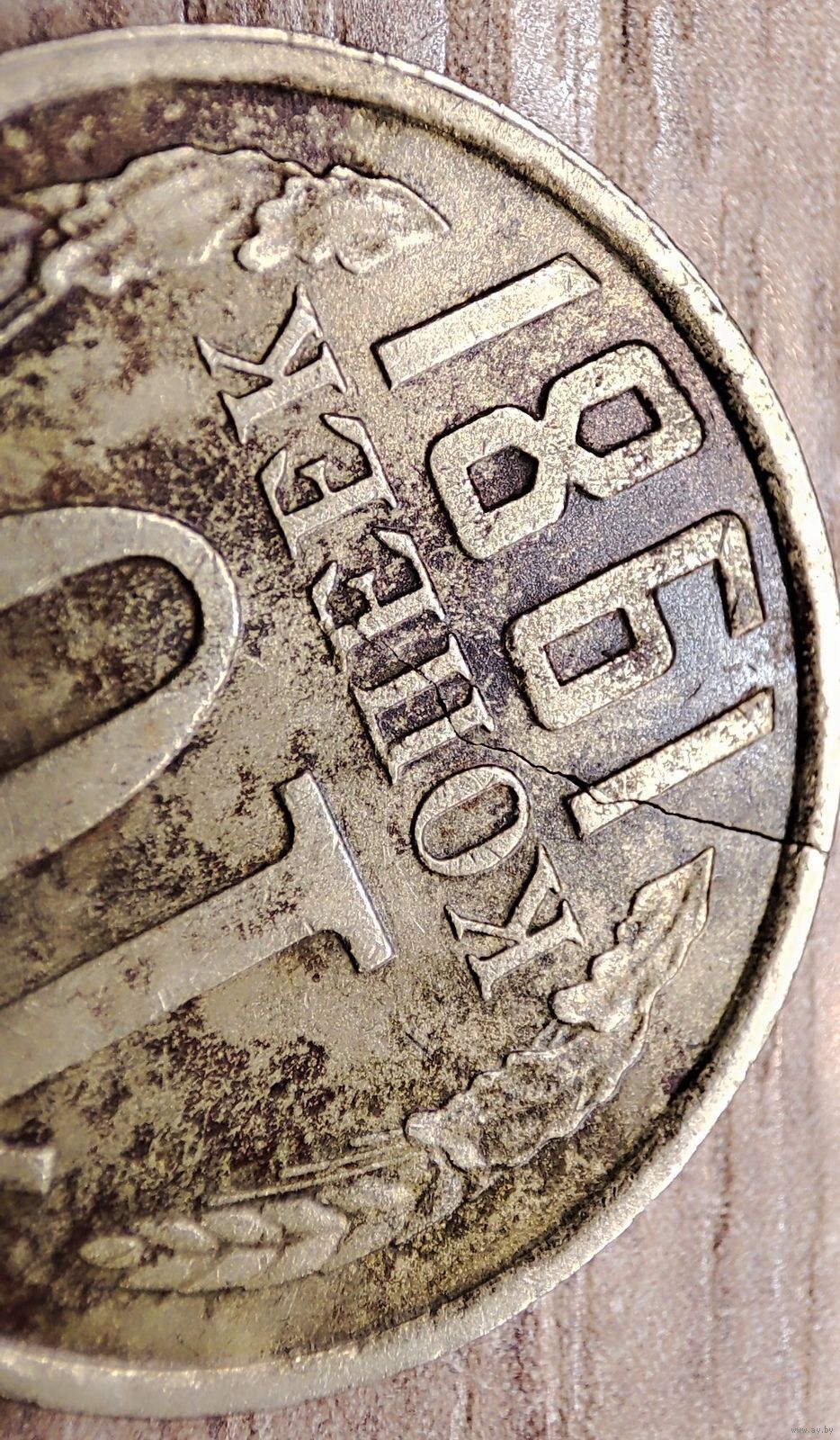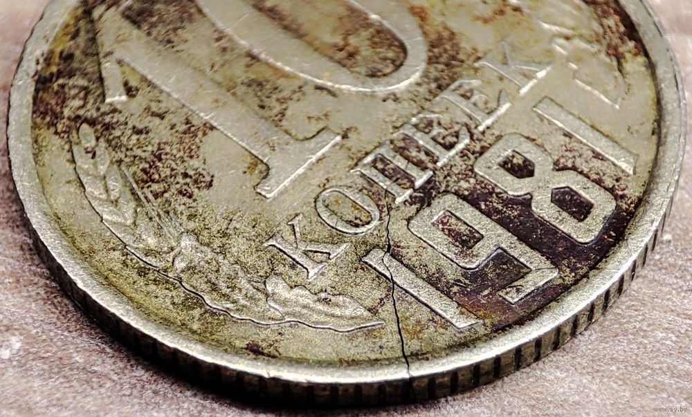 Монета номиналом 10 копеек 1981 СССР в количестве - 1шт. Трещина в монете сквозная и появилась непонятным образом, никаких механических воздействий для её получения мною не обнаружено. На дальнейший излом пальцами - не поддаётся(づ ◕‿◕ )づ. Следы воздействия на монету посторонними предметами отсутствуют. Сама монета в какой-то застывшей смазке