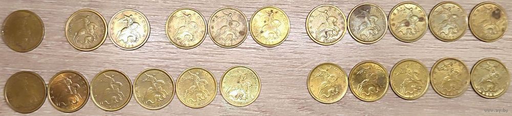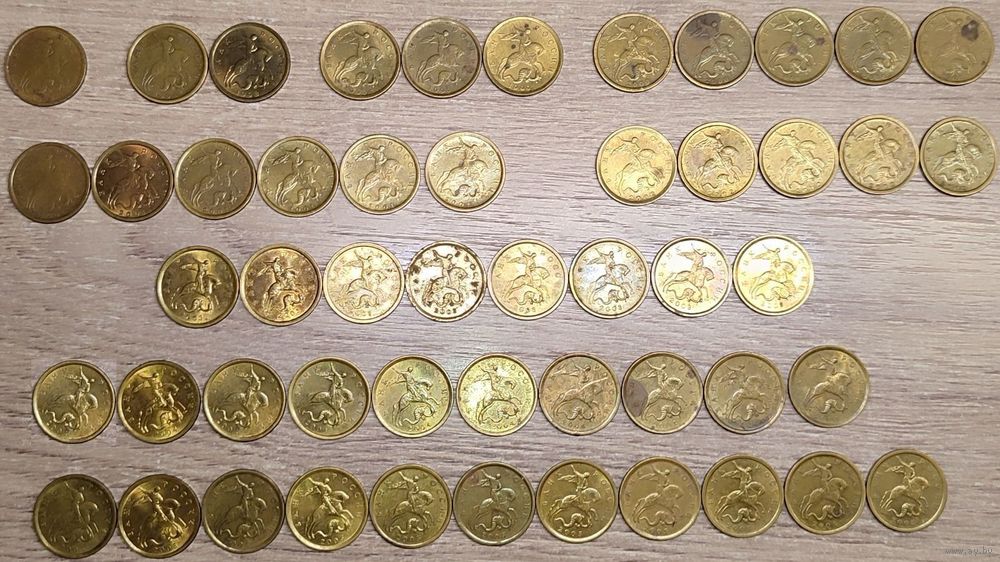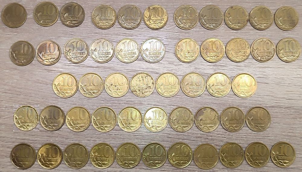 Лот монет номиналом 10 копеек 1997-2005 С-П общим количеством - 51шт (все немагнитные):