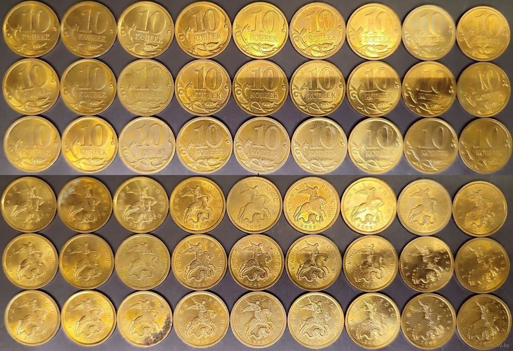 - 10 копеек 2008 М - 10шт. У одной сдвиг канта и блискучая, у одной несоосность